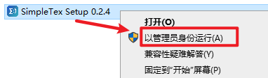2.选中“SimpleTex Setup 0.2.4”,右键选择“以管理员身份运行”