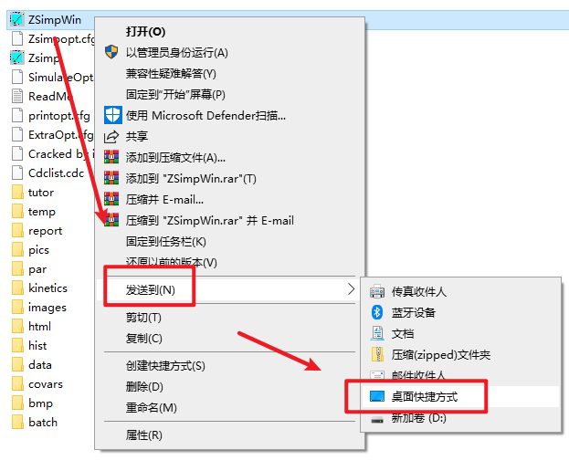 2.打开解压好的问仅仅,找到并选中“ZSimpWin”,右键选择“发送到—桌面快捷方式”