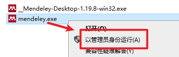2.选中“Mendeley”,右键选择“以管理员身份运行”