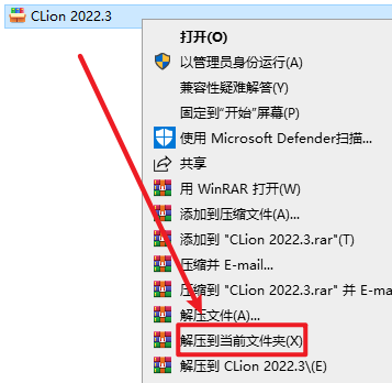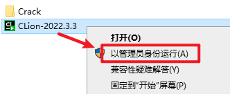 2.打开刚刚解压的文件夹,选中”CLion-2022.3.3”右键选择“以管理员身份运行”