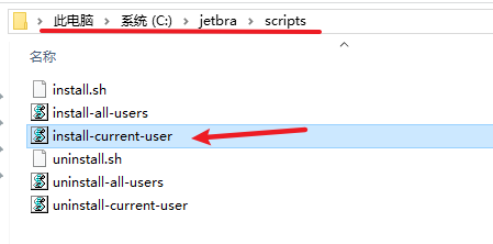 11.双击打开复制过来的“jetbra”文件夹,再打开“scripts”文件夹,双击运行“install-current-user”文件