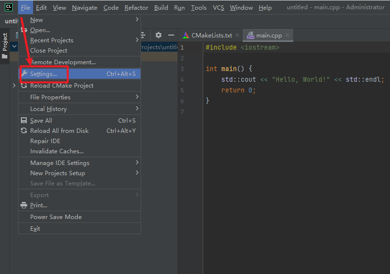22.点击“File”选择“settings……”