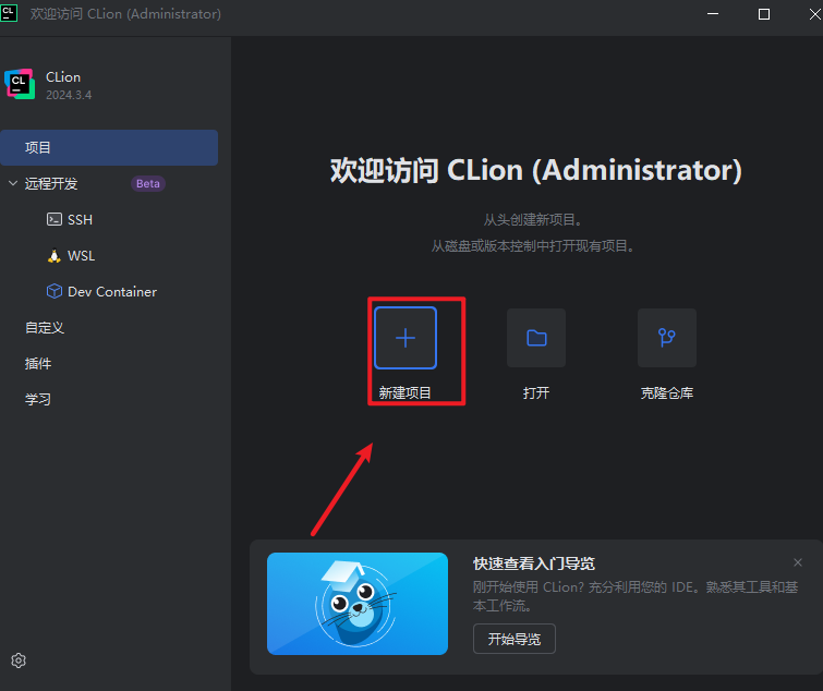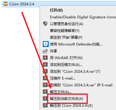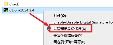 2.打开刚刚解压的文件夹,选中“CLion-2024.3.4”右键选择“以管理员身份运行”