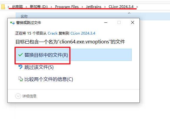 12.返回之前解压的“CLion 2024.3.4”文件夹,双击打开“Crack”文件夹,复制“jetbraincrack”文件夹