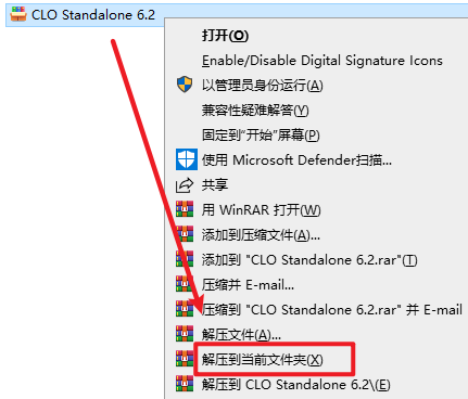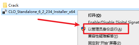 2.打开刚刚解压的文件夹,选中“CLO_Standalone_6_2_234_Installer_x64”右键选择“以管理员身份运行”