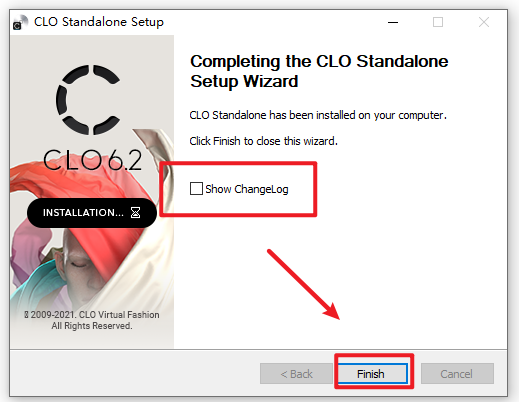 9.取消勾选“Show ChangeLog”,点击“Finish“