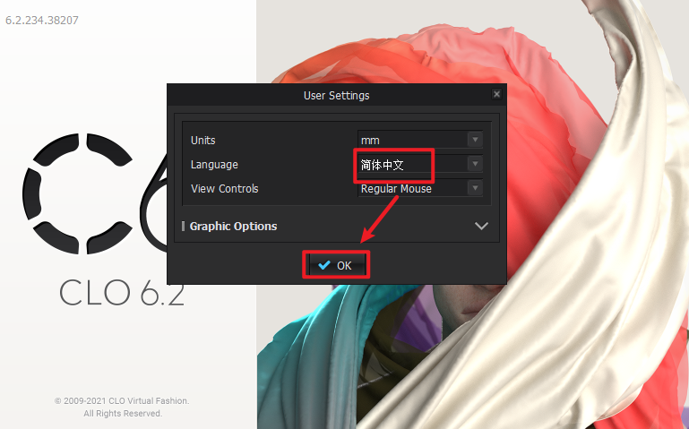 15.Language选择“简体中文”,点击”OK“