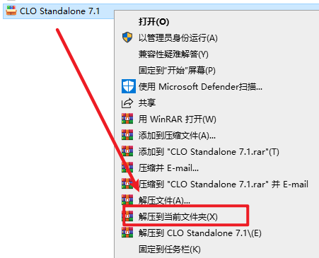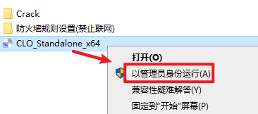 2.打开刚刚解压的文件夹,选中“CLO_Standalone_x64”右键选择“以管理员身份运行”