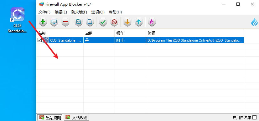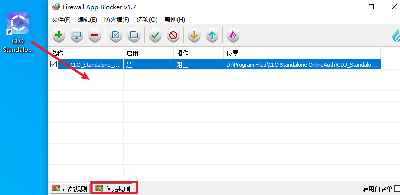 15.点击“入站规则”,将CLO Standalone OnlineAuth再次拖动到程序界面中
