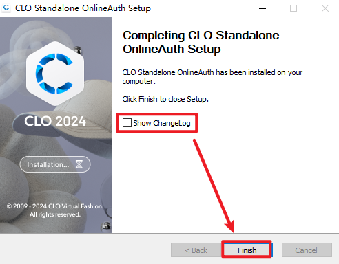 8.取消勾选“Show ChangeLog”,点击“Finish“