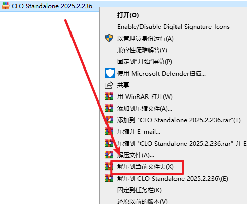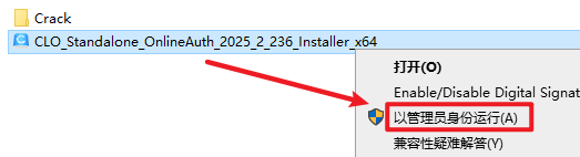 2.打开刚刚解压的文件夹,选中“CLO_Standalone_OnlineAuth_2025_1_126_Installer_x64”右键选择“以管理员身份运行”