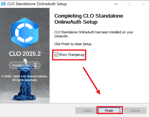 9.取消勾选“Show ChangeLog”,点击“Finish“