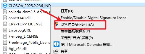 13.选中粘贴过来的“CLOSOA_2025.1.126_iND”文件,右键选择“以管理员身份运行”