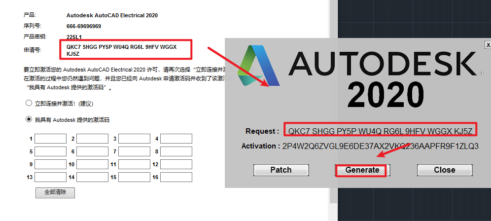 18.将安装界面的“申请码”复制到粘贴到“Request”,点击“Generate”