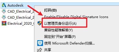 2.打开刚刚解压的文件夹,选中“CAD_Electrical_2020_64 (1)”右键选择“以管理员身份运行”