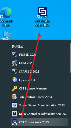 16.在开始菜单中找到“CST Studio Suite 2023“软件,拖拽到桌面上即可创建桌面快捷方式