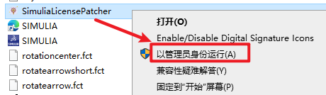 22.选中“SimuliaLicensePatcher”文件,右键选择“以管理员身份运行”