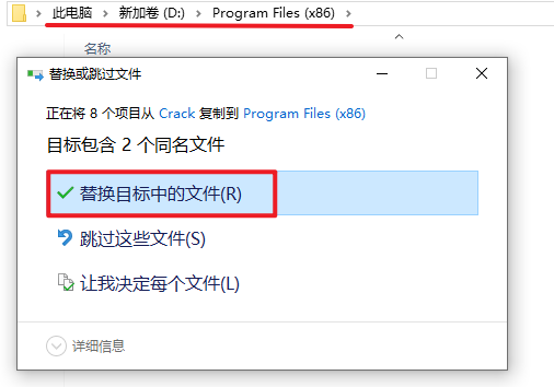 20.粘贴复制的文件到该路径下,选择“替换目标中的文件”