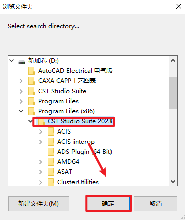 24.选择CST Studio Suite 2023程序路径,点击“确定”