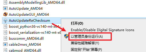 28.选中“AutoUpdateReChecksum”文件,右键选择“以管理员身份运行”