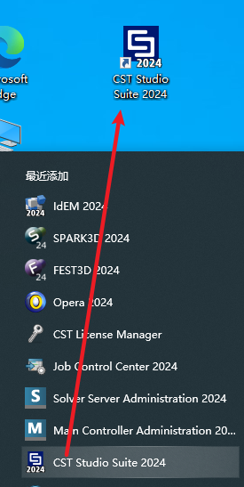 16.在开始菜单栏中找到“CST Studio Suite 2024“软件,拖拽到桌面上即可创建桌面快捷方式