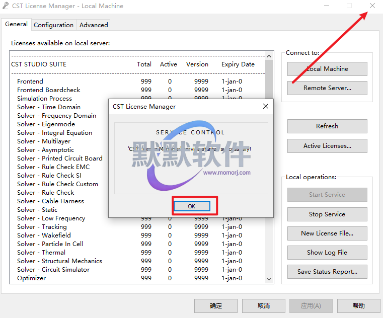 23.提示“successfully!”表示服务启动成功,点击“OK”,点击右上角的关闭
