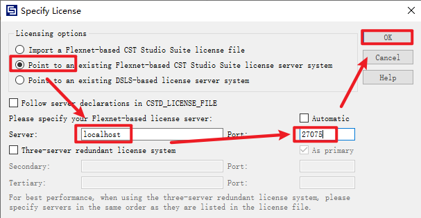 25.点击“Point to existing…”,输入Server: localhost,输入Port:27075,点击“OK”