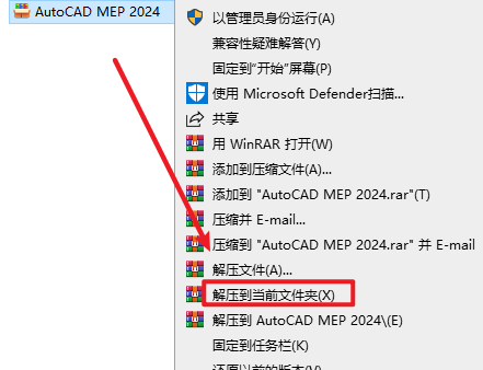 1.选中下载的安装包,然后右键选择“解压到当前文件夹“