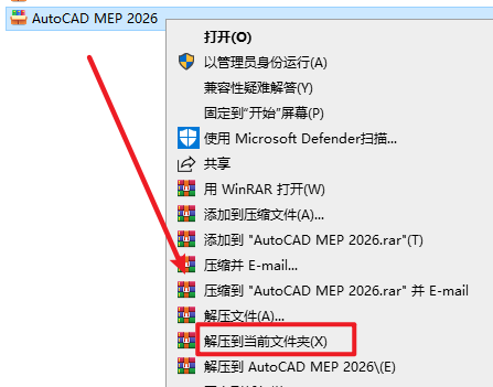 1.选中下载的安装包,然后右键选择“解压到当前文件夹“