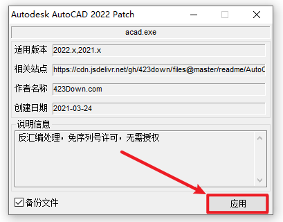 9.返回安装文件夹,双击打开“Crack”文件夹,复制“AutoCAD2022-2021Patch”