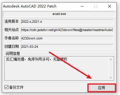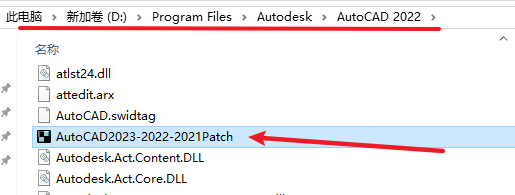 8.返回安装文件夹,双击打开“Crack”文件夹,复制“AutoCAD2022-2021Patch”
