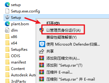 2.打开刚刚解压的文件夹,双击打开“AutoCAD_Plant_3D_2023”文件夹,选中“Setup”右键选择“以管理员身份运行”