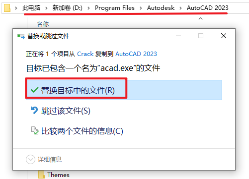 7.返回安装文件夹,双击打开“Crack”文件夹,复制“acad” 文件