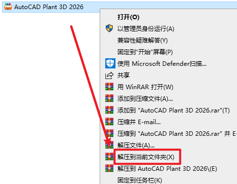 1.选中下载的安装包,然后右键选择“解压到当前文件夹”