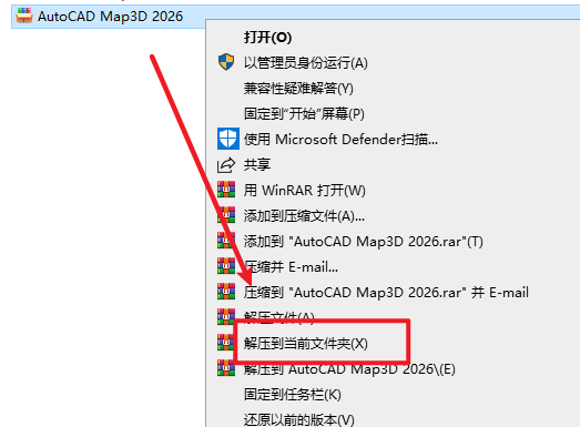 1.选中下载的安装包,然后右键选择“解压到当前文件夹”