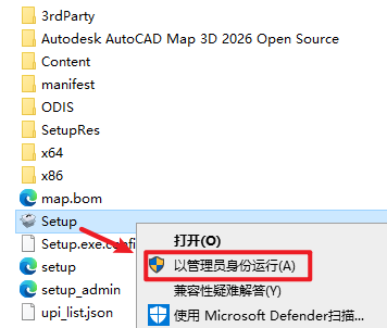 2.打开刚刚解压的文件夹,打开“CAD_Map3D_Setup”文件夹,选中 “Setup”右键选择“以管理员身份运行”