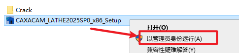 “CAXACAM_LATHE2025SP0_x86_Setup”文件,右键选择 “以管理员身份运行”