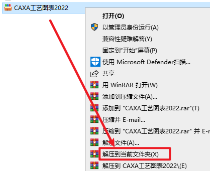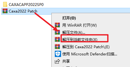 9.返回安装文件夹,选中“Caxa2022 Patch.rar”文件,右键选择“解压到当前文件夹”
