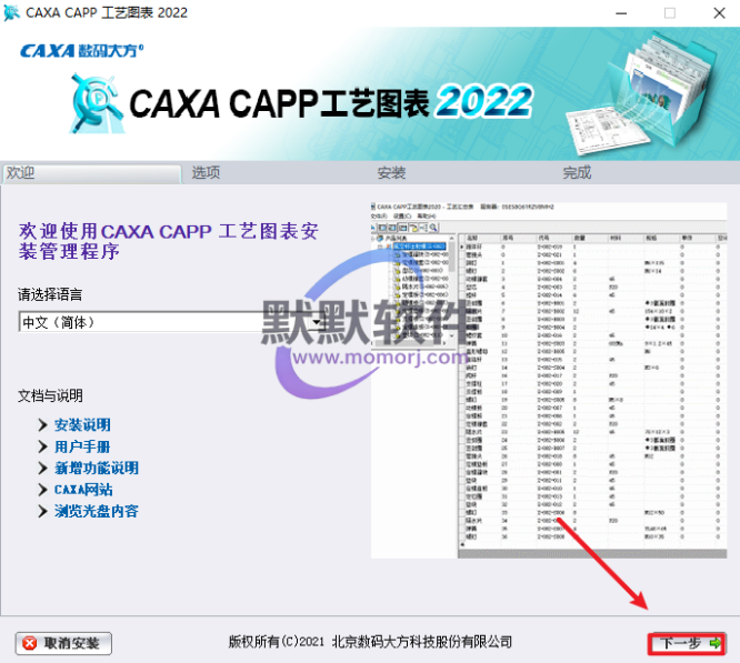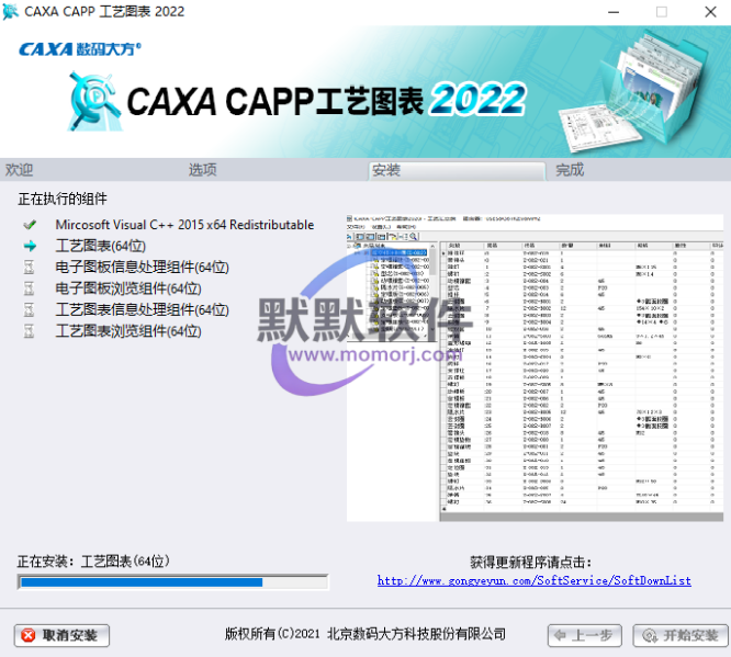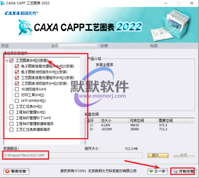 5.勾选“工艺图表”,选择软件安装路径,安装路径不要出现中文,勾选其他需要安装的组件,点击“开始安装”
