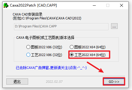 11.根据电脑的操作系统位数选择“工艺2022 X86”(32位操作系统)或”工艺2022 x64″(64位操作系统),点击”GO>>”