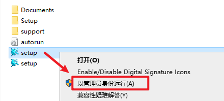 3.选中“Setup”右键选择“以管理员身份运行”