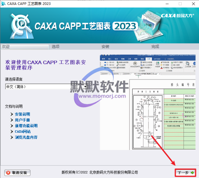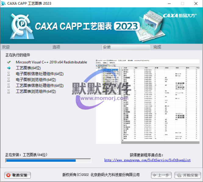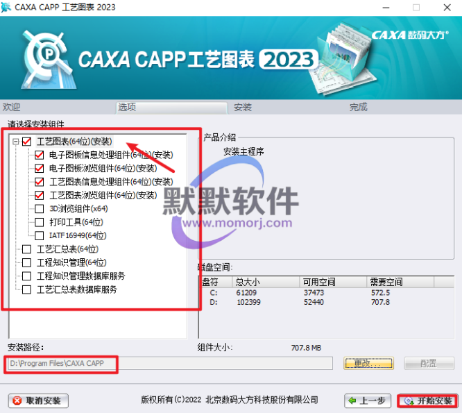 6.勾选“工艺图表”,选择软件安装路径,安装路径不要出现中文,勾选其他需要安装的组件,点击“开始安装”