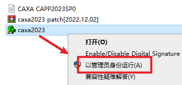 10.返回安装文件夹,选中“caxa2023”右键选择“以管理员身份运行”