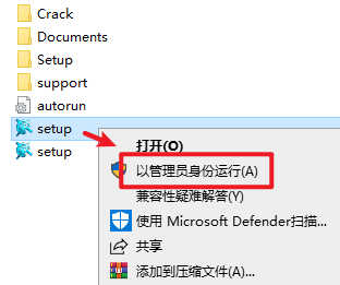 2.打开刚刚解压的文件夹,选中“setup”文件,右键选择“以管理员身份运行”