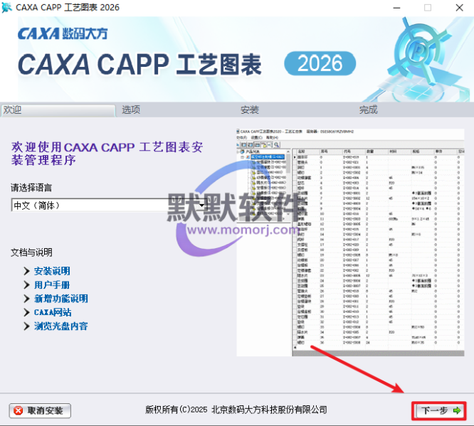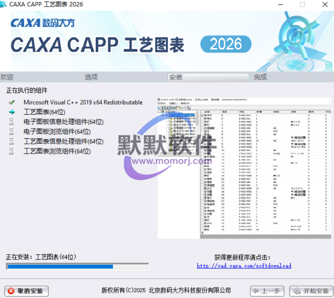 5.勾选“工艺图表”,选择软件安装路径(必须选中工艺图表项),安装路径不要出现中文,勾选其他需要安装的组件,点击“开始安装”