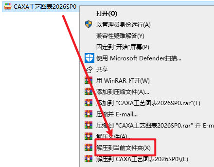 1.选中下载的安装包,右键选择“解压到当前文件夹”
