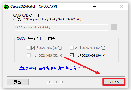 10.自动检测勾选”工艺2026 x64″(64位)“,点击”GO>>”