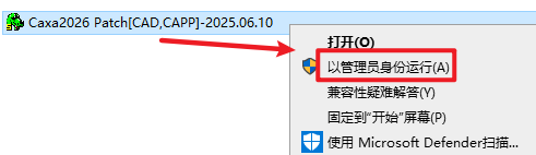 9.返回安装文件夹,双击打开“Crack”文件夹,选中“Caxa2026 Patch[CAD,CAPP]-2025.06.10.exe”右键选择“以管理员身份运行”