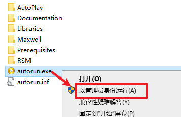 2.打开解压好的文件夹,选中“Autorun”应用程序,右键选择“以管理员身份运行”