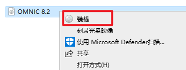 2.打开解压好的文件夹,选中“OMNIC 8.2”ISO文件,右键选择“装载”
